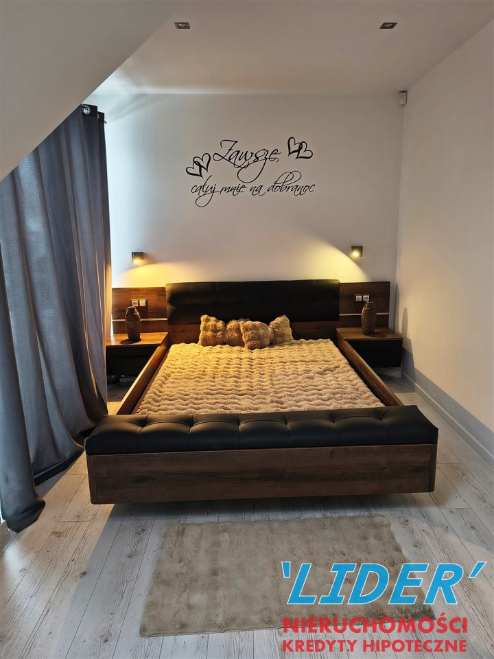 Standard: do wprowadzenia. Wszystko urządzone w niebywałym stylu z troską o najdrobniejsze szczegóły. Ściany - gładzie, podłogi - panele oraz płytki. Kuchnia w nowoczesnej zabudowie na wymiar. Łazienki w glazurze nowego typu. W całym budynku rozprowadzone ogrzewanie podłogowe, dodatkowo w łazienkach kaloryfery elektryczne. Dodatkowym atutem tej nieruchomości jest zainstalowany odkurzacz centralny oraz system alarmowy.Zalet tej nieruchomości można by wyliczać bez liku, ale nic nie zastąpi wrażenia, jakie sprawia na wizji!