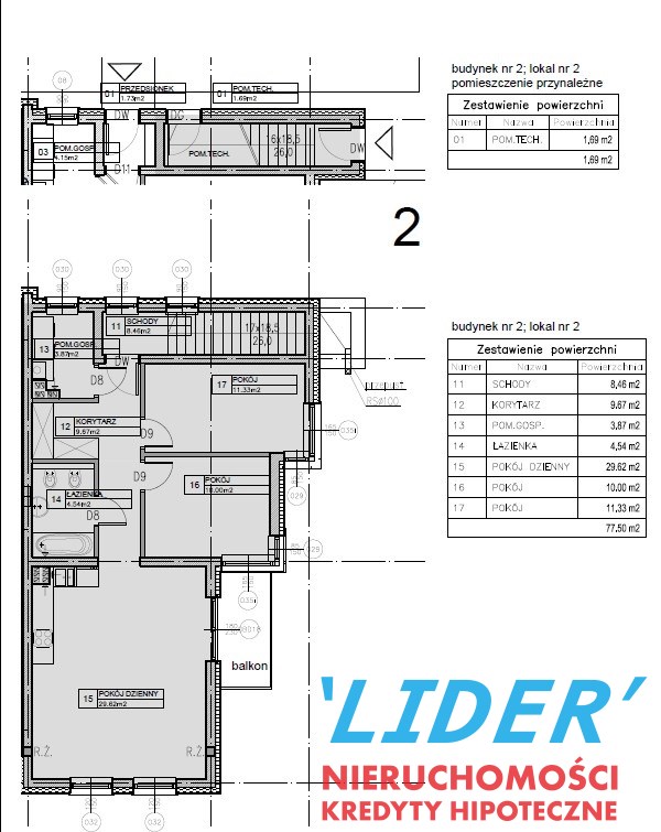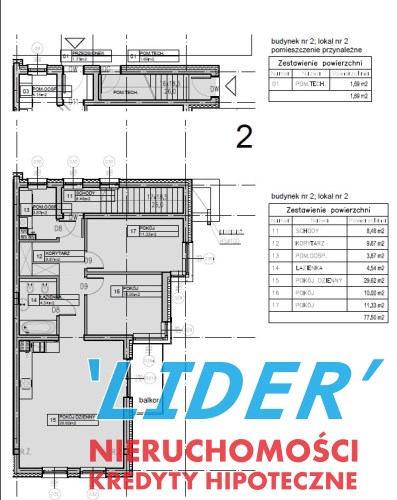 77,5 m2 składa się z następujących pomieszczeń: