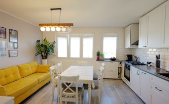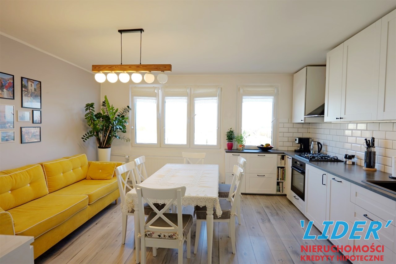 • jasnego salonu z aneksem kuchennym,